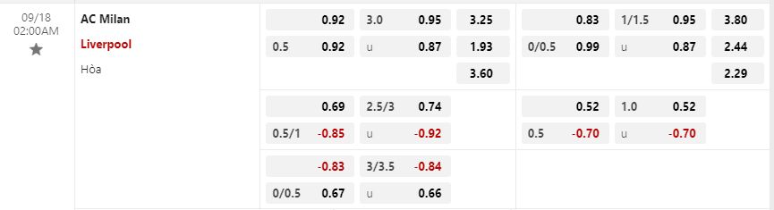 Soi kèo châu Á AC Milan vs Liverpool