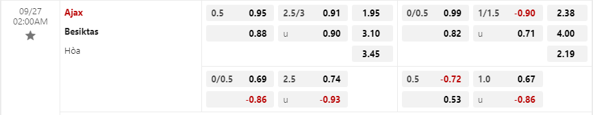 Soi kèo châu Á Ajax vs Besiktas