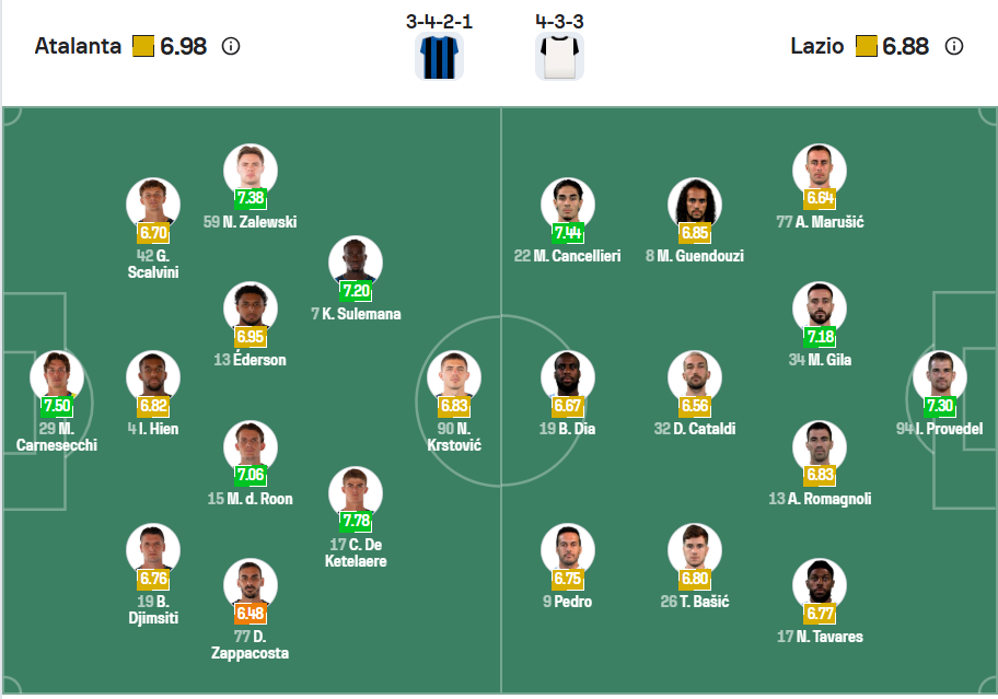 Lazio chỉ đứng thứ 7 mùa giải trước, họ vẫn chưa thể dự Champions League như kỳ vọng ban đầu. Mùa giải năm nay mọi thứ có vẻ còn tệ hơn với thầy trò HLV Maurizio Sarri khi họ thua đến 3 trận sau 6 vòng đầu tiên và đang đứng thứ 13 trên bảng xếp hạng. Các cầu thủ Lazio cần một chiến thắng ở vòng đấu tới để cải thiện thứ hạng, nhưng chuyến làm khách trên sân của một Atalanta đang bất bại không hề dễ dàng. Nhiều khả năng sự quyết tâm của Lazio sẽ chỉ giúp họ có được kết quả hòa ra về.
