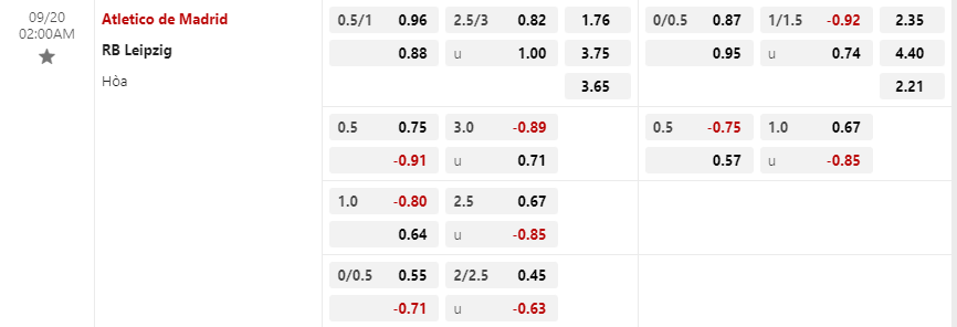 Soi kèo châu Á Atletico Madrid vs RB Leipzig