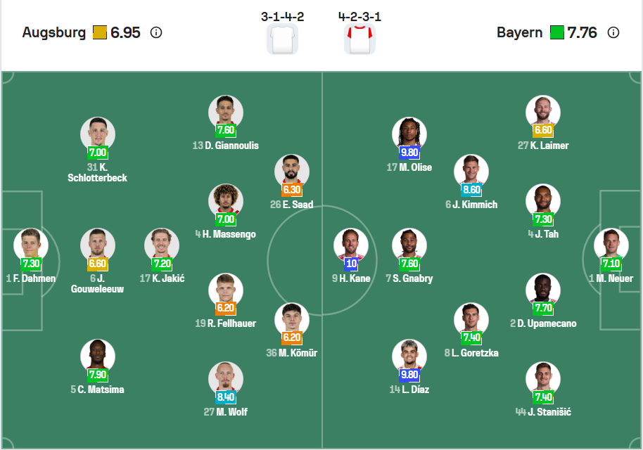 Dự đoán tỉ số trận đấu: Augsburg 2 – 4 Bayern (Chọn Bayern và Tài trận)