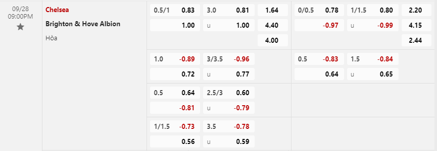 Soi kèo châu Á Chelsea vs Brighton