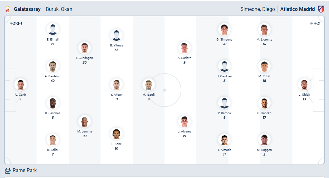 Lượt trận thứ 7 vòng League Phase Champions League, Galatasaray sẽ tiếp Atletico Madrid trên sân nhà với mục tiêu giành một kết quả tích cực sau 2 lượt đấu thua liên tiếp. Đây không phải nhiệm vụ dễ dàng và đội chủ nhà cần chơi tập trung thì mới đạt được mục đích.