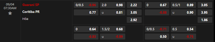Những trận đấu giữa Guarani vs Coritiba trong quá khứ thường có rất ít bàn thắng được ghi với chỉ 8 bàn sau 6 trận gặp nhau trước đó. Với hiệu suất ghi bàn trung bình mỗi trận cực kì ít ỏi với chỉ 1.3 bàn mỗi trận thì người chơi nên tin tưởng để đặt Xỉu ở kèo đấu này sẽ có cơ hội thắng kèo cao hơn. Mời các bạn cùng xem bóng đá trực tiếp trên Xoi Lac Z.