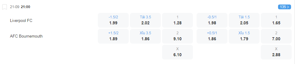 Soi kèo tài xỉu Liverpool vs Bournemouth