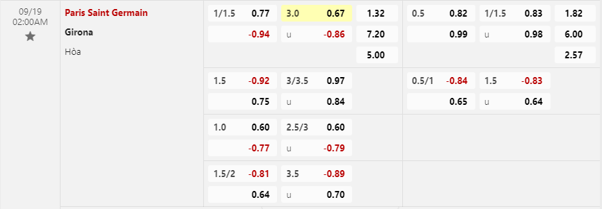 Soi kèo châu Á Paris Saint-Germain vs Girona