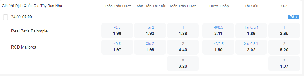 Nhận định soi kèo Real Betis vs Mallorca vào 02h00 ngày 24/9/2024