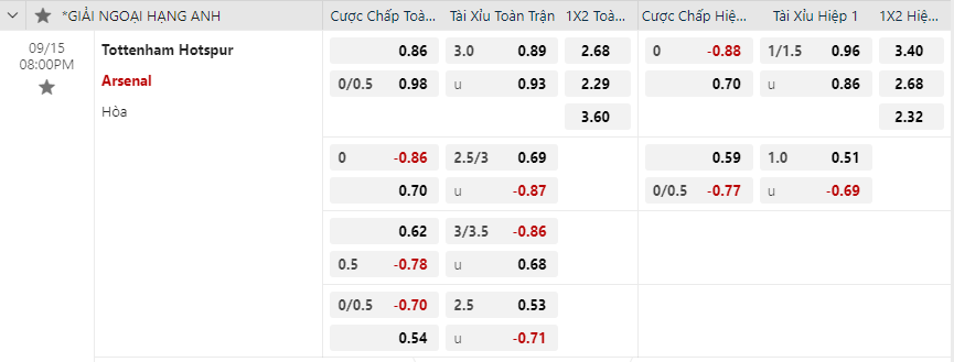 Soi kèo hiệp 1 Tottenham Hotspur vs Arsenal