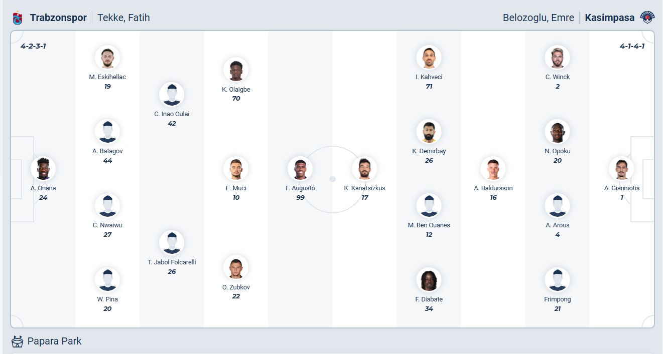 Trabzonspor đứng thứ 7 mùa giải trước, vị trí không khiến người hâm mộ đội bóng này hài lòng, họ cần chơi tốt hơn ở mùa giải này và hiện tại đang cho thấy điều đó. Thầy trò HLV Fatih Tekke đang đứng thứ 3 trên bảng xếp hạng và hoàn toàn có thể nghĩ đến cuộc đua vô địch mùa giải này. Muốn làm được điều đó thì Trabzonspor cần tiếp tục giành chiến thắng trong các trận đấu tiếp theo của mình, đối thủ Kasimpasa ở vòng đấu thứ 19 không mạnh nên 3 điểm không phải điều khó thực hiện. Nhiều khả nưang đội chủ nhà sẽ đạt được mục đích.